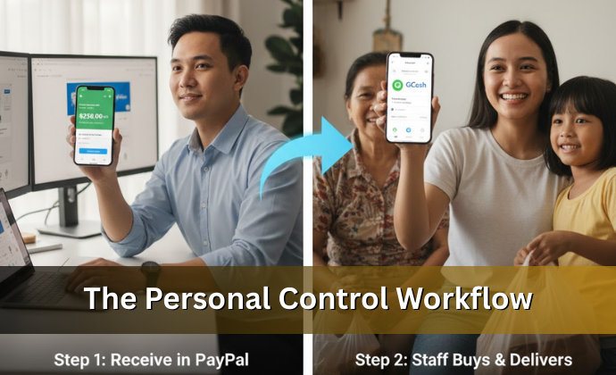 This is very safe for you. When a customer pays, the money goes into YOUR personal PayPal account. You hold the cash. You only send the budget to the staff in Leyte via GCash when there is a real order to buy.